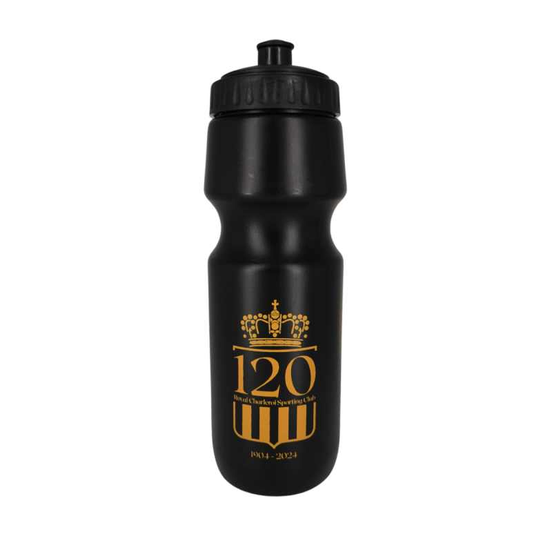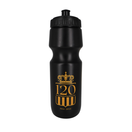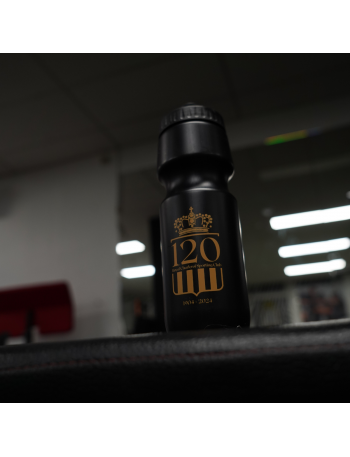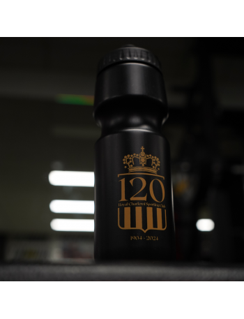 Bidon noir de vélo 750ml reprenant le logo 120ans doré