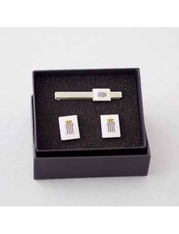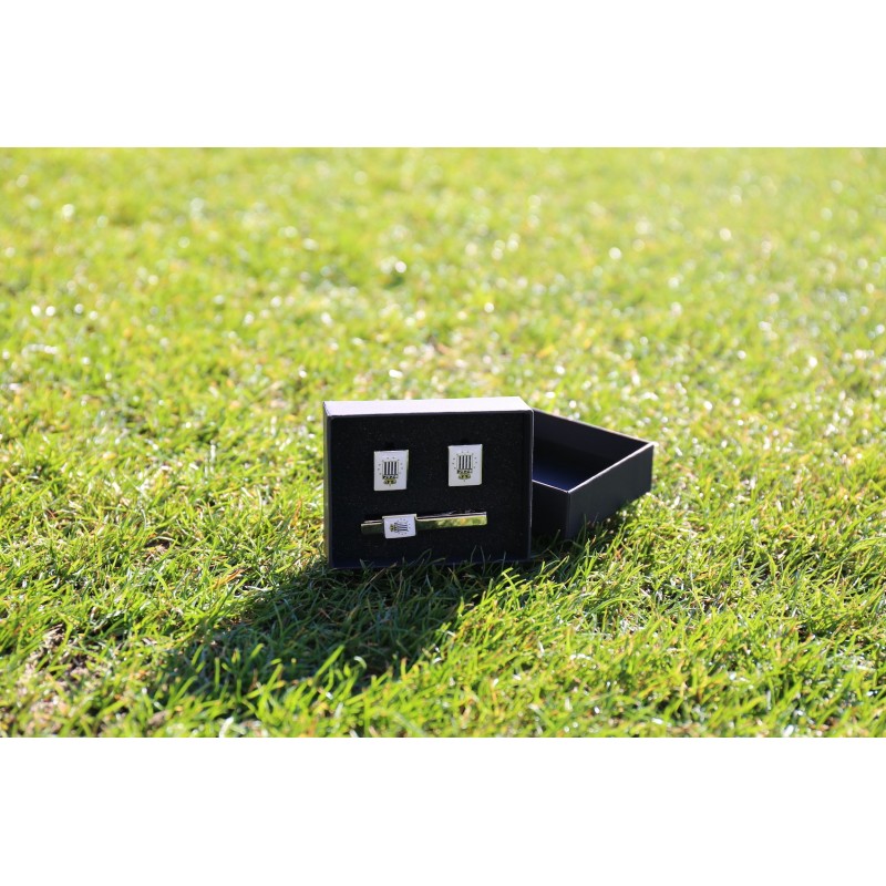 Une pince à cravate et une paire de boutons de manchette au logo du Sporting !