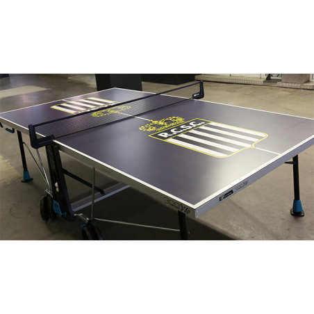 Venez tapez la balle avec votre famille et amis aux couleurs du Sporting de Charleroi. Ses pieds réglables en hauteur et ses grandes roues lui permettent de s'attaquer à tous les terrains. Ses compteurs de points sont idéaux pour les matchs durs, et ses espaces de rangement pour raquettes et balles s'avéreront très pratiques. Avec son système de verrouillage / déverrouillage alliant ergonomie et sécurité optimales, ainsi que ses puissants freins, toute la famille est en mesure de manipuler la table en toute sécurité.