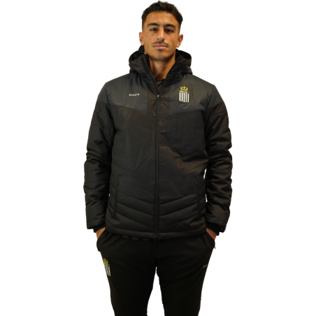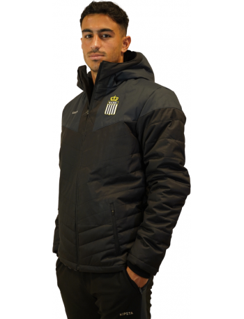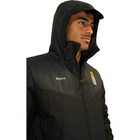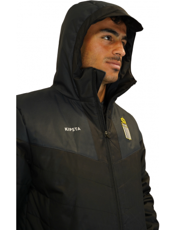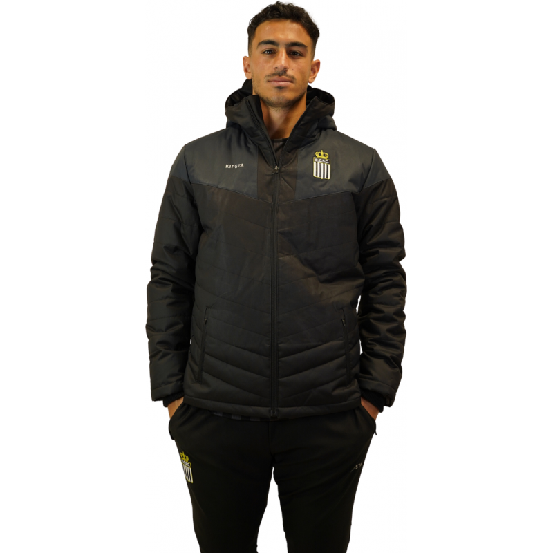 Veste d'hiver imperméable officielle pour la saison 2023-2024, conçue par Kipsta avec capuche et entièrement zippée. Cette veste ornée du blason zébré vous permettra d'affronter le monde extérieur par temps froid, pluvieux et/ou venteux.
