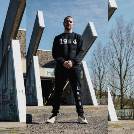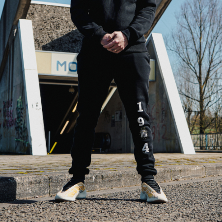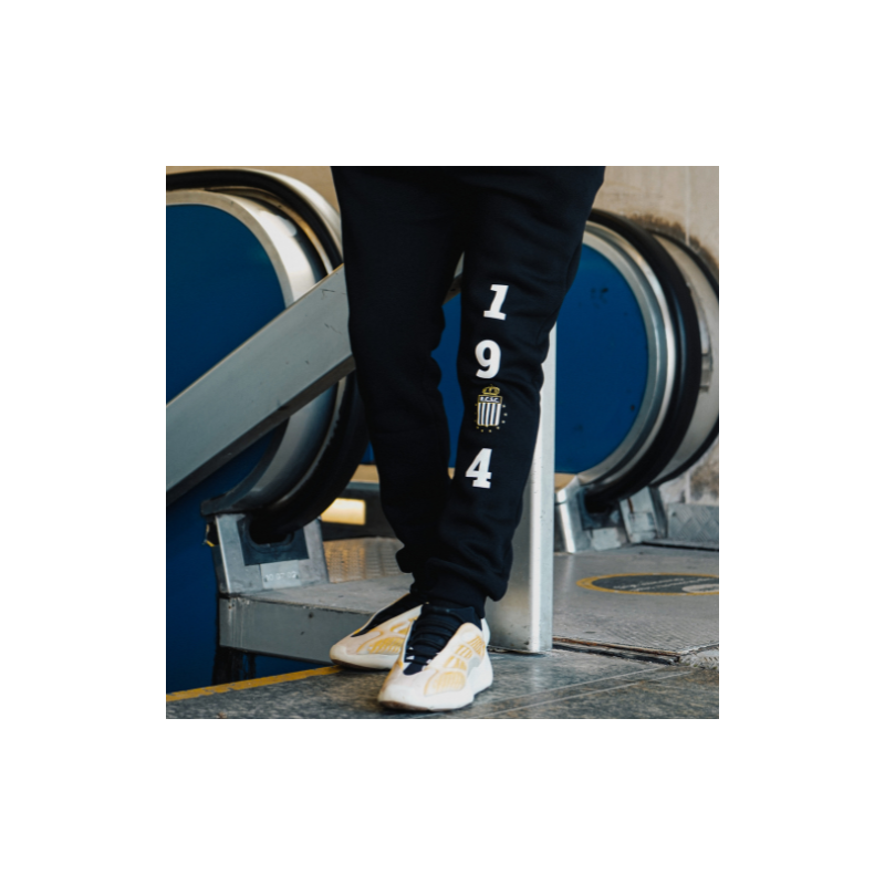 Description : Le Sweatpants 1904 est un pantalon de survêtement en coton doux de couleur noir, orné d'un grand logo "1904" en longueur sur l'avant de la jambe gauche, en hommage à l'année de création du Sporting Charleroi. Ce pantalon est chaud, confortable et respirant, parfait pour les journées fraîches.